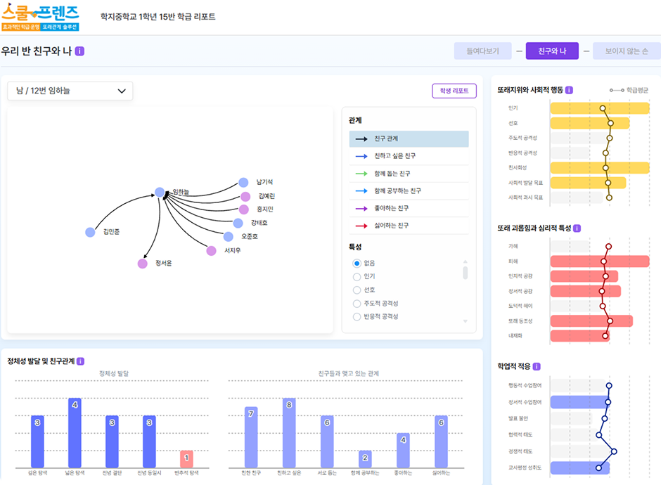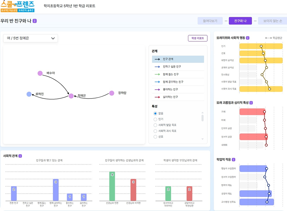 누가 누구와 친한지, 어떤 점이 불안한지 교사는 더 정확한 지원을 할 수 있습니다.