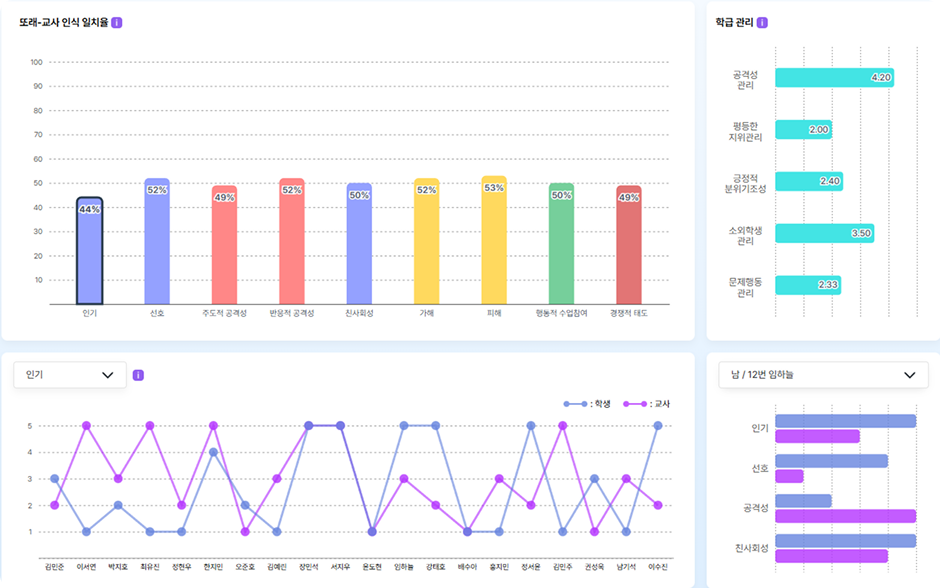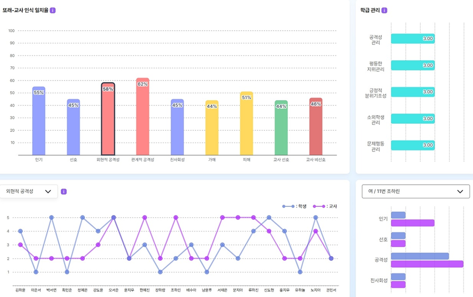이 두 가지 지표를 함께 활용하면 개별 학생과 학급 전체의 관계를 연결해 이해할 수 있는 통찰을 제공합니다.